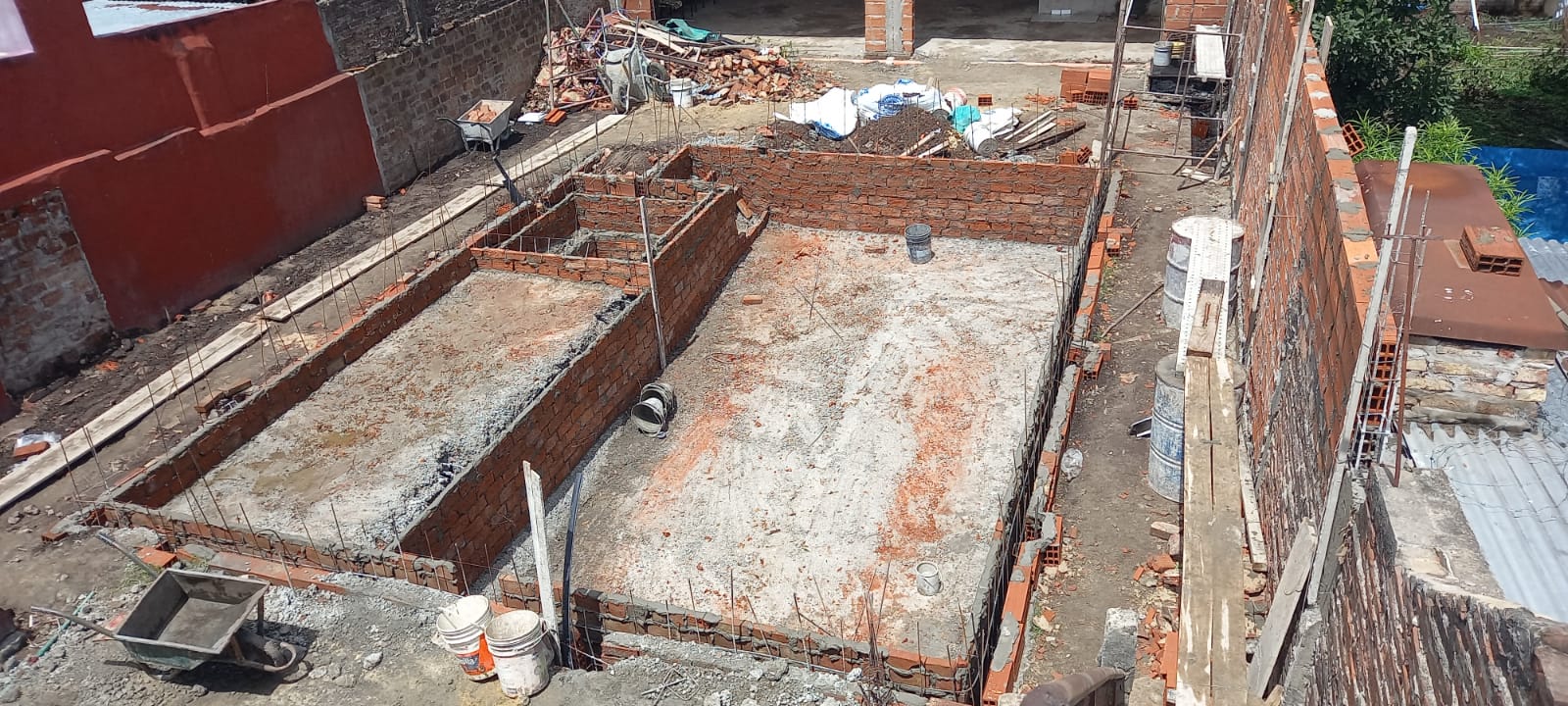 Comenzamos por plantar las bases sólidas y la estructura de hierro que definirían la forma y estabilidad de la piscina. Cada paso fue meticulosamente planificado para asegurar una base fuerte y duradera.